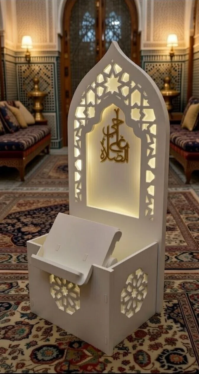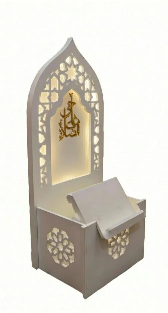 - "بزاف منا كيبغي ركن خاص فالدار فين يصلي بخشوع، ويقرأ القرآن فهدوء. هاد المحراب المنزلي ماشي غير قطعة ديكور، هو دعوة للراحة النفسية وسط دارك. مصمم بلمسة إسلامية أصيلة وإضاءة دافئة كتخليك تحس بالروحانية فكل صلاة."